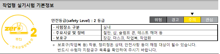 시험은 작업형 시험으로 안전등급 2등급의 시험입니다.