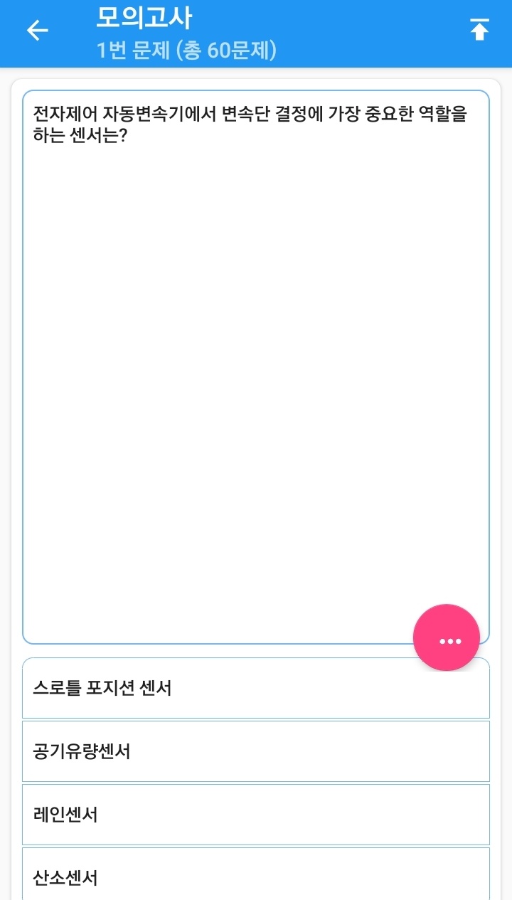 위 어플은 자동차정비기능사 필기 기출문제와 모의고사 등 여러 유형의 문제를 풀 수 있는 어플입니다.