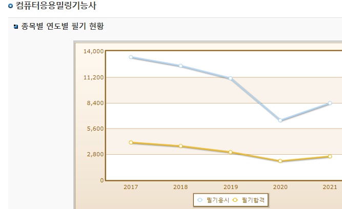 실기 시험의 경우 60%를 넘어가지만 필기시험의 경우 합격률이 엄청 낮은 시험으로 시험대비를 철저히 해야 합니다.