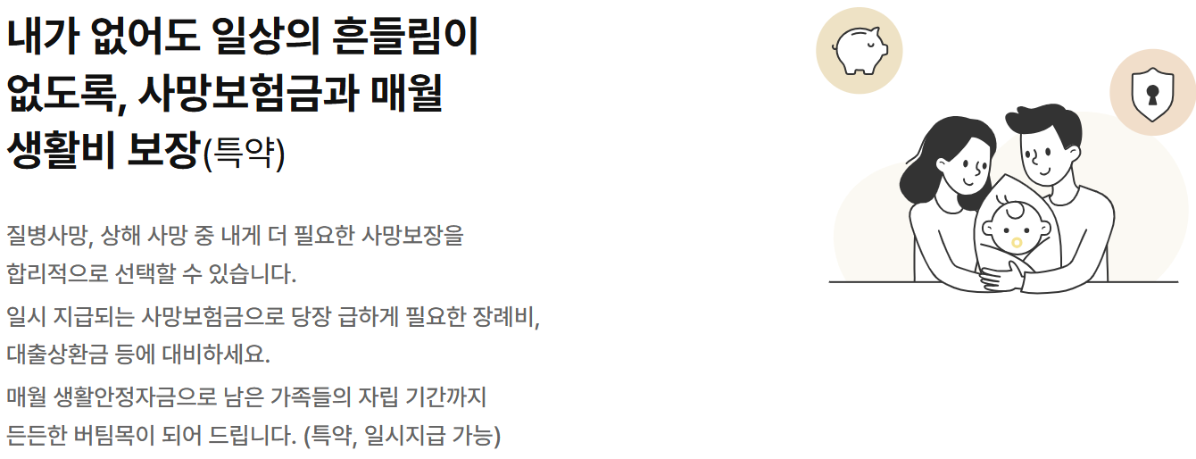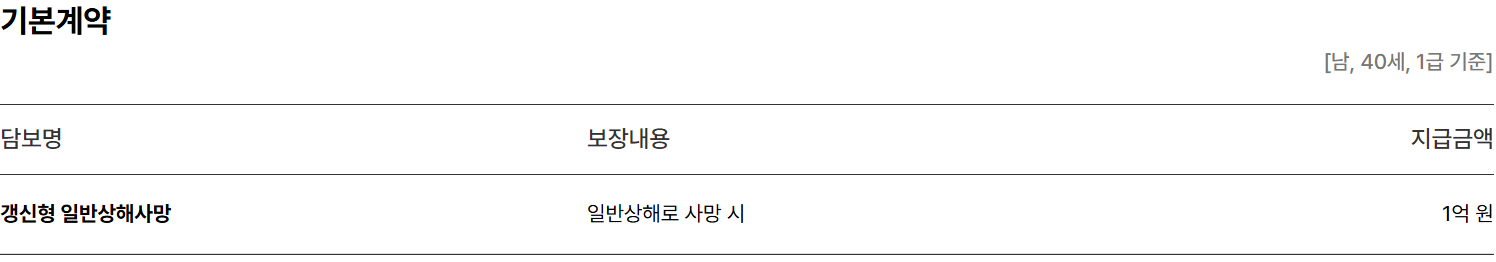 - 보험기간 내 사망 시 유가족에게 1억 원 지급