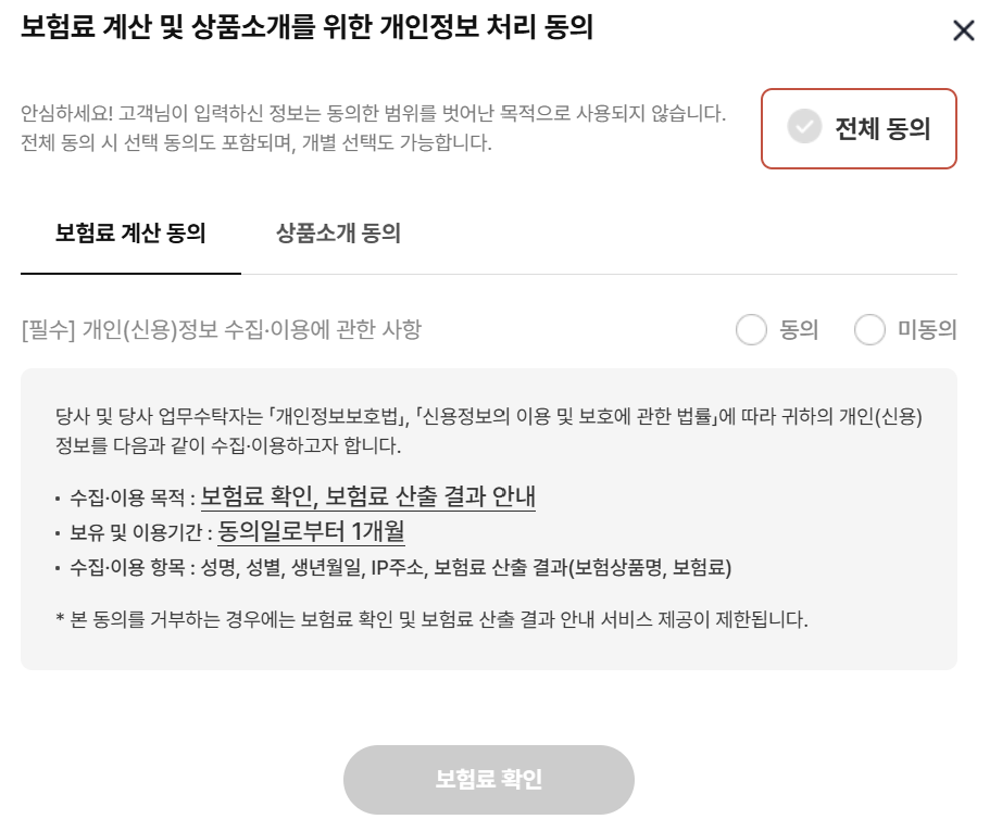 보험료 계산 동의가 나오는데 보험료 계산만 동의하시고 상품소개 동의는 안 하시는게 좋습니다.