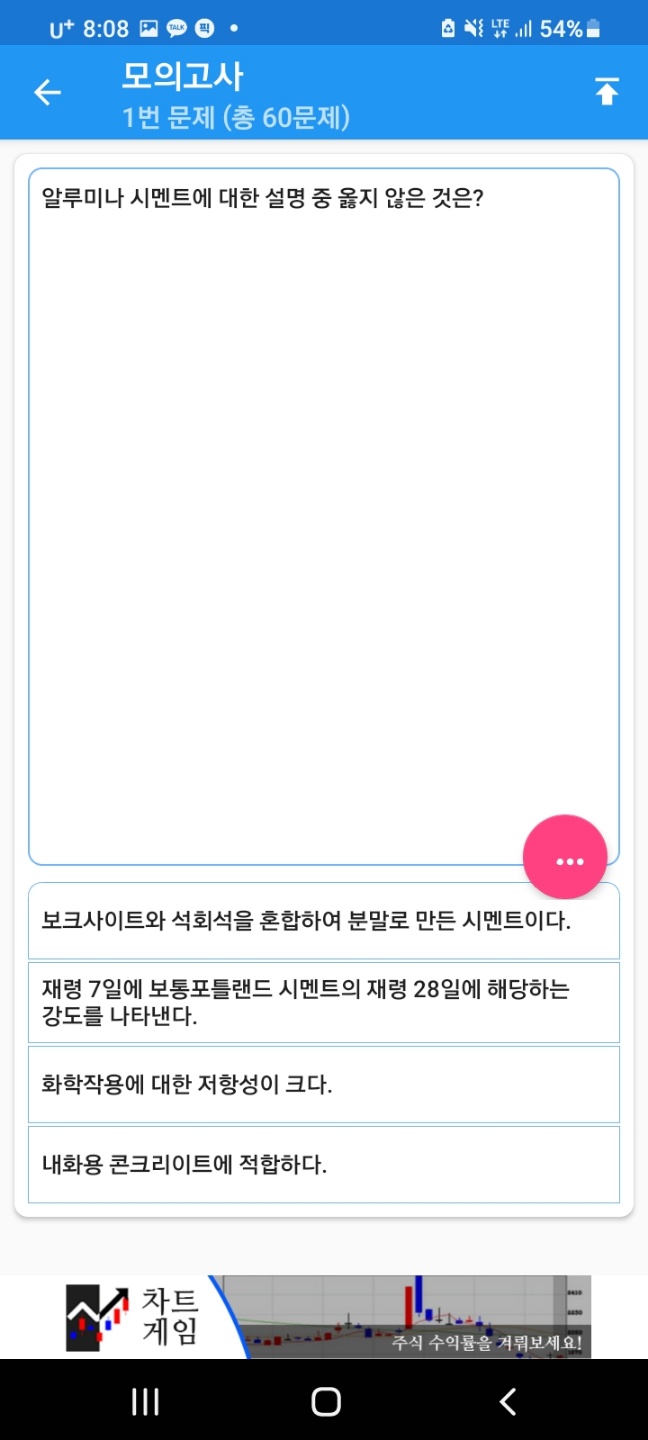 이 어플은 연도별 기출문제와 모의고사 및 오답 채점이 가능하며, 다른 사용자들과 자격증 시험에 대한 정보 공유도 가능한 어플입니다. 정말 유용한 어플로 시험 준비하시는 분들이 정말 좋아합니다.