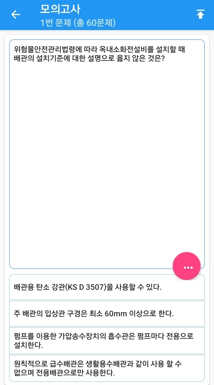 필기시험 과목은 화재예방과 소화방법,위험물의 화학 정 성질 및 취급 두 과목으로 되어 있으며, 객관식 4지 택일형으로 60문제를 60분 동안 풀면 되고 합격기준은 100점 만점 기준 60점(36문제 이상) 이상을 맞아야 합니다.