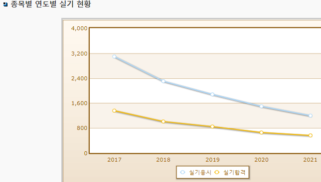 필기시험 합격률은 높은 편인 시험으로 실기시험 합격률은 50%정도입니다.