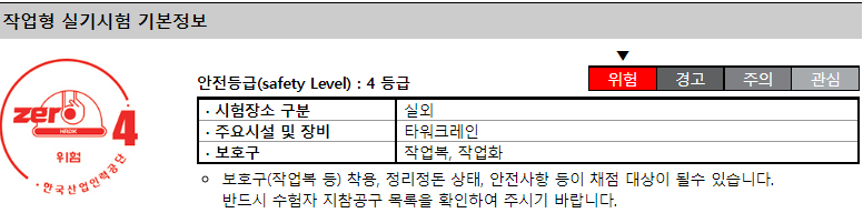 타워크레인 운전기능사 실기시험은 안전등급 4등급의 시험으로 보호구 및 수험생 지참공구 목록을 꼭 확인하셔서 챙기셔야 감점을 받지 않을 수 있으니 꼭 챙기시길 바랍니다.