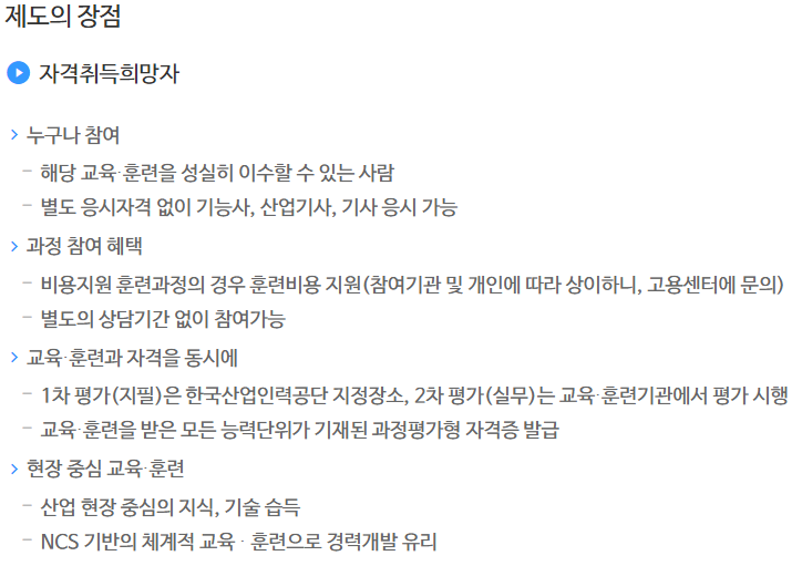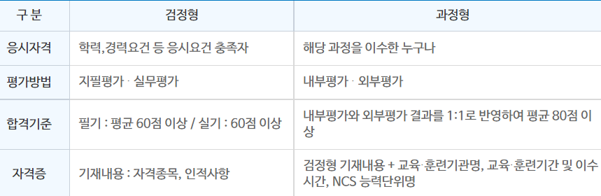 국가직무능력표준으로 설계된 교육 및 훈련과정을 체계적으로 이수하고 내,외부 평가를 거쳐 취득하는 국가기술 자격증입니다.